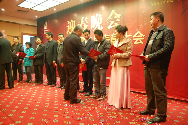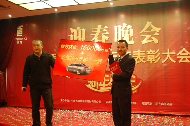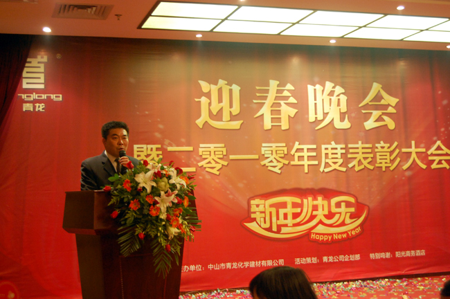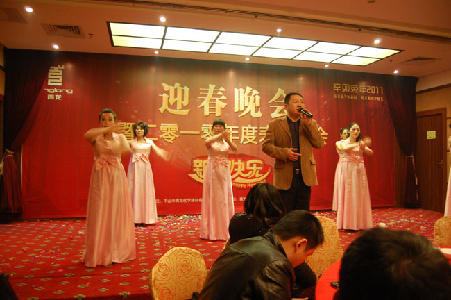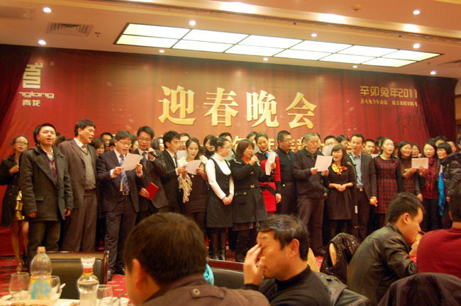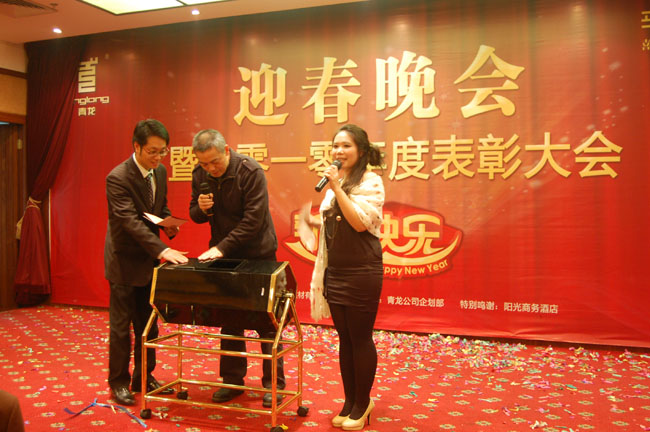 2011年1月14日,中山某大酒店四樓樓宴會(huì)廳張燈結(jié)彩,座無(wú)虛席,洋溢著濃濃的節(jié)日氣氛,青龍公司2011迎春晚會(huì)暨2010表彰總結(jié)大會(huì)在此隆重舉行,青龍公司總部、中山廠、東莞公司、廣州辦、深圳辦、惠州辦的員工代表、特約嘉賓及全體員工350余人出席了聯(lián)歡會(huì)。