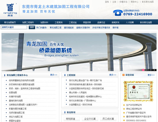 經(jīng)過精心的策劃和籌備,東莞市青龍土木建筑加固工程有限公司(www.dgqinglong.com)網(wǎng)站現(xiàn)已正式上線,并進(jìn)入運(yùn)行階段。 網(wǎng)站以簡約風(fēng)格為主調(diào),色彩與公司風(fēng)格保持一致。網(wǎng)站內(nèi)容豐富、結(jié)構(gòu)清晰。簡潔的瀏覽體驗(yàn)可使您快速獲得想要的信息。完善客戶服務(wù),提供優(yōu)質(zhì)在線服務(wù),我們期待您的關(guān)注參與和支持!