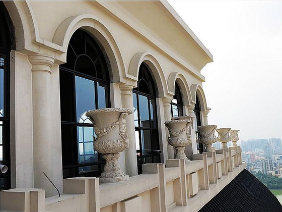 項目的B座為商住樓建筑,呈現(xiàn)出歐式風格。建筑的外觀均為經(jīng)典的灰白配色,外墻則采用了廣西青龍化學建材有限公司生產(chǎn)的歐式構(gòu)件作為裝飾,包括羅馬柱、窗框裝飾構(gòu)件、建筑線條,雕塑等,從細微處展現(xiàn)出建筑的非凡品質(zhì)。此外,建筑頂部的幾層和裙樓部分也大量地采用了歐式構(gòu)件,從而將古典歐式建筑的精髓演繹到好的,成為了南寧商住樓建筑的新標桿。