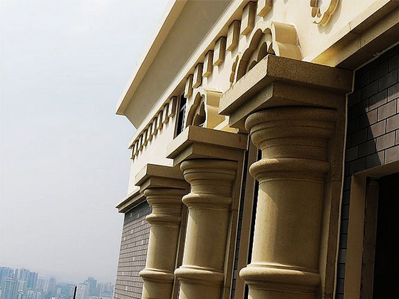 青龍(集團)公司集產(chǎn)品開發(fā)、生產(chǎn)、建筑藝術(shù)裝飾于一體,近年來,憑借著雄厚的技術(shù)力量、齊全的生產(chǎn)設備,公司生產(chǎn)出包括飾線、羅馬柱、窗套、檐花、欄河花瓶、浮雕等一系列極盡裝飾美感的水泥外墻裝飾產(chǎn)品,被廣泛地應用在各種高檔樓盤當中,成為了它們不可缺少的伴侶。