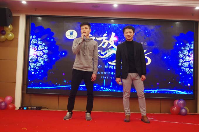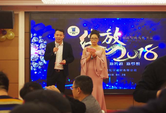 年會(huì)在公司董事長宋董的致辭中,拉大盛幕。宋董總結(jié)了2017年公司的收獲,公司整體業(yè)務(wù)增長30%以上,成長趨勢好;特別是8月26日以來,新成立的家裝事業(yè)部,新零售店招商勢頭發(fā)展迅猛至1月份,合作及加盟商將近100家。同時(shí)展望2018,希望大家一起努力,讓公司更快更好的發(fā)展。特別是家裝提出招募目標(biāo)500家新零售加盟商,達(dá)到行業(yè)一線品牌。對(duì)工程防水和GRC業(yè)務(wù),也提出了目標(biāo)整體在2017年的基礎(chǔ)上30%以上增長,要實(shí)現(xiàn)公司業(yè)務(wù)結(jié)構(gòu)跨越式發(fā)展步伐。青龍公司籌劃上市鼓舞著每一位青龍員工士氣,為防水事業(yè)做出不懈努力,帶領(lǐng)大家賺大錢。