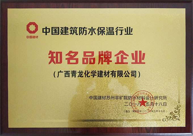 青龍榮獲"中國建筑防水保溫知名品牌企業(yè)"稱號