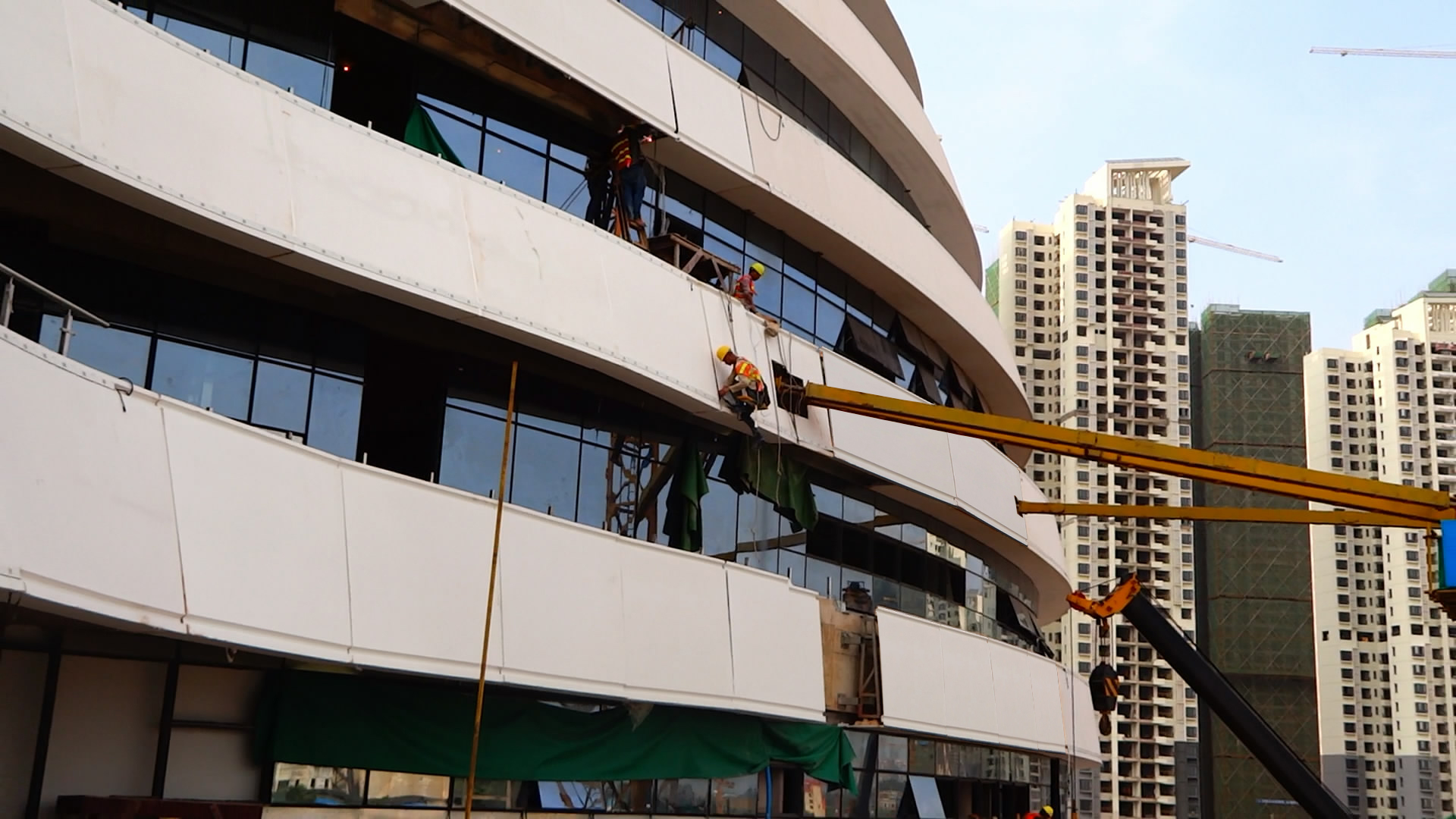 青龍公司作為國(guó)內(nèi)GRC領(lǐng)域的知名企業(yè),承接了新媒體中心三座主體結(jié)構(gòu)的雙曲面外墻板項(xiàng)目。由于所有的面板沒(méi)有一片完全相同,不僅要經(jīng)受高空風(fēng)雨的侵蝕,相鄰兩塊更要緊密榫合,天衣無(wú)縫,并在整體上形成流線性美感,因此需要制作大量的模具,工程極為繁瑣。但青龍GRC團(tuán)隊(duì)克服重重困難,從圖紙深化設(shè)計(jì)、彩色GRC選材、造型產(chǎn)品生產(chǎn)到安裝施工等一系列工序中都做到極致,讓甲方和監(jiān)理都非常滿意。