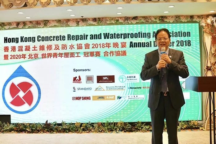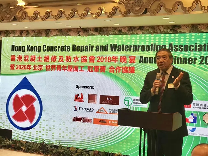 9月13日,值香港混凝土維修及防水協(xié)會(以下簡稱HKCRWA)2018年會及成立第三十二周年紀念晚宴之際,兩岸四地(中國大陸、中國香港、中國澳門、中國臺灣)防水協(xié)會及相關領域領導人、嘉賓在香港九龍新港中心濟濟一堂,就分別組團參加2020年北京第28屆世界青年屋面工冠軍賽等事宜達成共識。