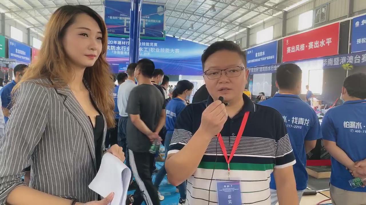 記者:大家好,就是我們廣東青龍的營(yíng)銷總監(jiān)賀金龍,請(qǐng)賀總幫我們講解一下這次比賽所使用的一些材料、施工注意事項(xiàng)等等呀,可以嗎?