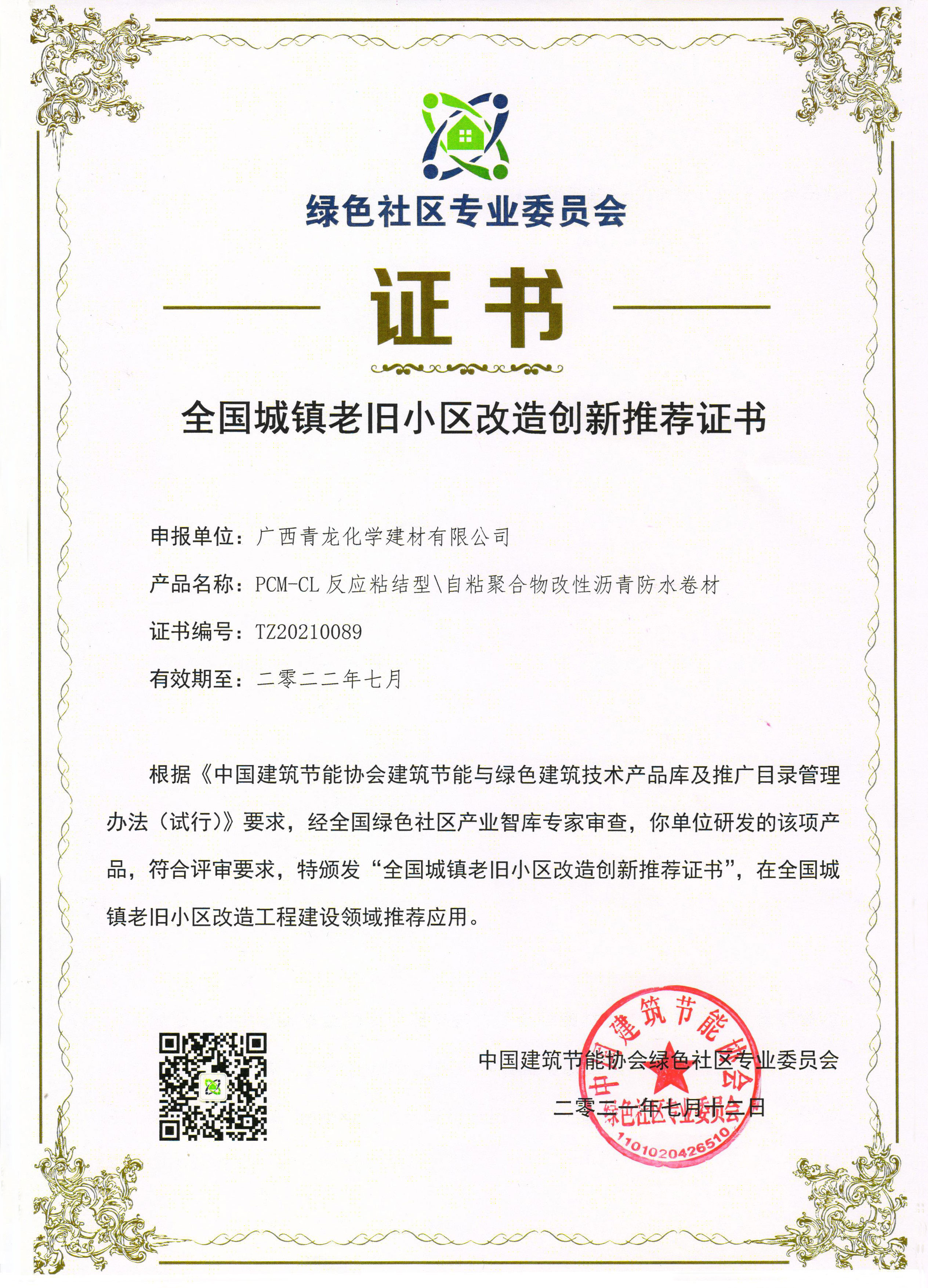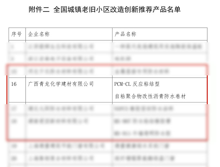 喜訊丨青龍PCM防水卷材入選全國(guó)城鎮(zhèn)老舊小區(qū)改造創(chuàng)新產(chǎn)品推薦名單