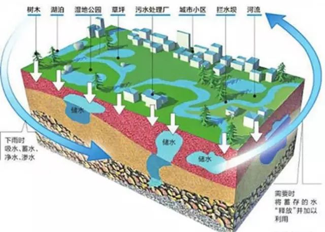 (1)海棉城市,是新一代城市雨洪管理概念,是指城市在適應(yīng)環(huán)境變化和應(yīng)對雨水帶來的自然災(zāi)害等方面具有良好的"彈性",也可稱之為"水彈性城市",國際通用術(shù)語為"低影響開發(fā)雨水系統(tǒng)構(gòu)建"。下雨時吸水、蓄水、滲水、凈水,需要的時候?qū)π畹挠晁?釋放"并加以利用。國務(wù)院辦公廳出臺"關(guān)于推進海綿城市建設(shè)的指導(dǎo)意見"指出,采用滲、滯、蓄、凈、用、排等措施,將70%的降的就地消納和利用。