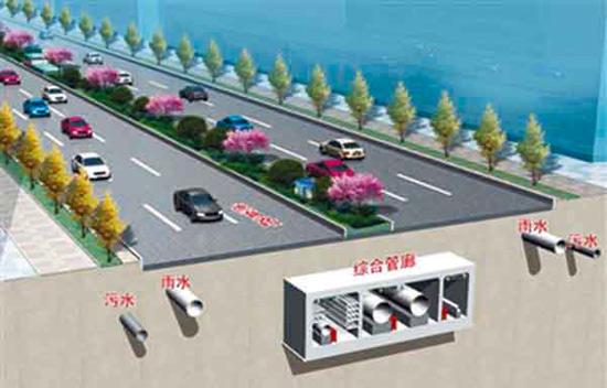 2)綜合管廊(日本稱"共同溝",臺灣稱"共同管道、"),就是地下城市管道綜合走廊。即在城市地下建造一個道道空間,將電力,通迅、燃氣,供熱,給排水等各種工程管線集于一體,沒有專門的檢修口,吊裝口和監(jiān)測系統(tǒng),實施統(tǒng)一規(guī)劃,統(tǒng)一設(shè)計,統(tǒng)一建設(shè)和管理,是保障城市運行的重要是礎(chǔ)設(shè)施和"生命線",它是實施統(tǒng)一規(guī)劃,設(shè)計,施工維護,建于城市地下用于鋪沒市政公用管線的市政公用設(shè)施。